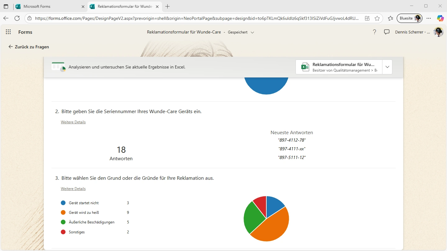 Wenn Sie Ihren Kunden ein Online-Formular für Reklamationen mit Microsoft 365 („Microsoft Forms“) bieten, finden Sie über die Schaltfläche „Antworten anzeigen“ die „Ergebniszusammenfassung“. An den dargestellten Diagrammen können Sie die Gründe schnell ablesen.