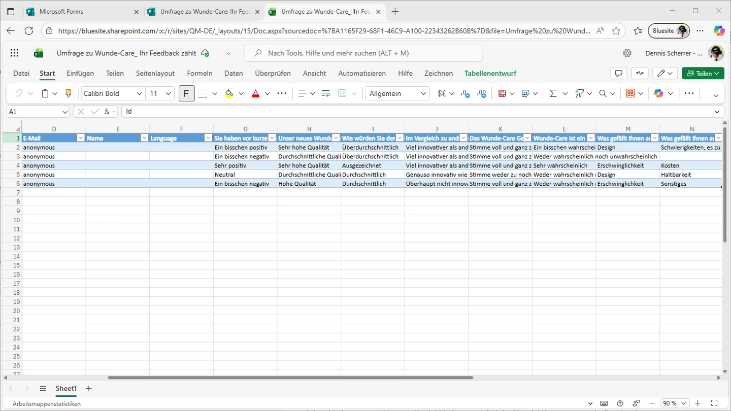 Die Antworten der Kunden werden sofort automatisch in Ihre geöffnete Excel-Tabelle synchronisiert. Sie können in Excel live zusehen, wie die Rückmeldungen bei Ihnen eingehen!