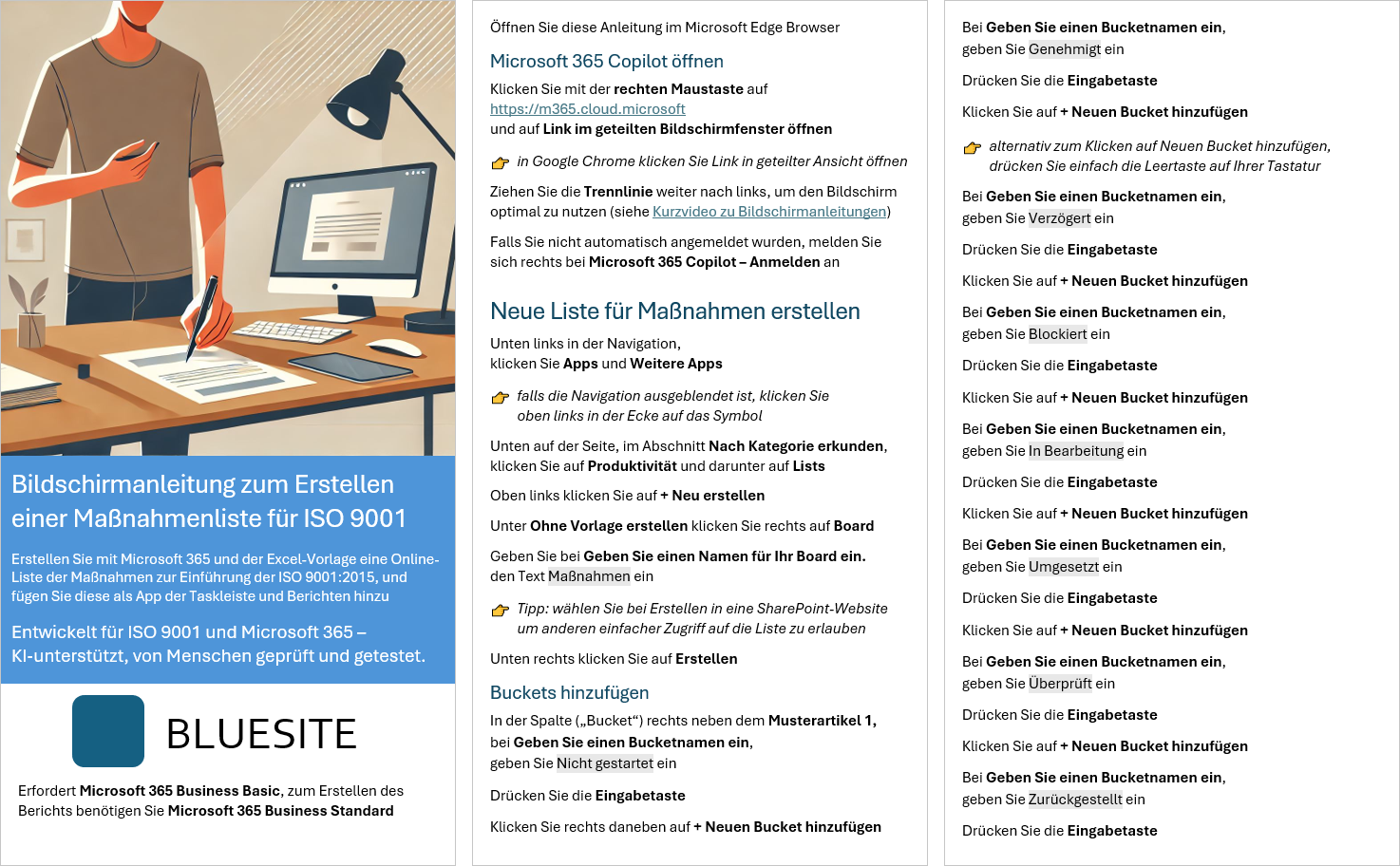 Eine Maßnahmenliste lässt sich mit Microsoft 365 auch als Board - bekannt von Kanban und Scrum - anzeigen.