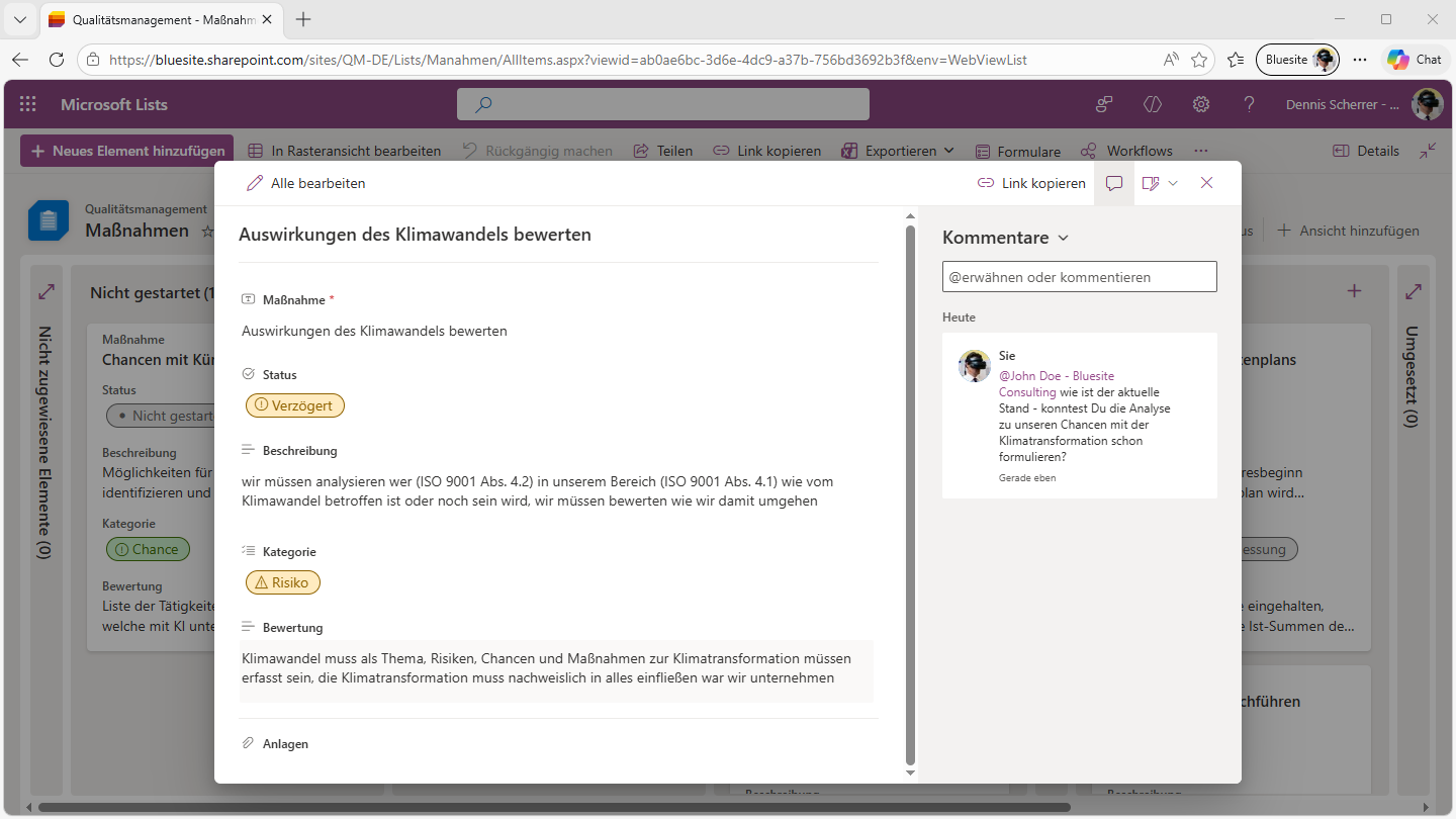 Online-Maßnahmenliste in Microsoft 365